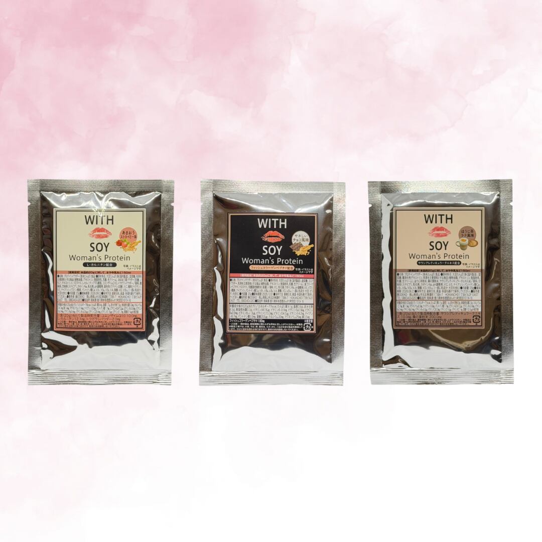 WITH SOY Woman’s Proteinの3種類を一度に体験できるお試しセットです。
