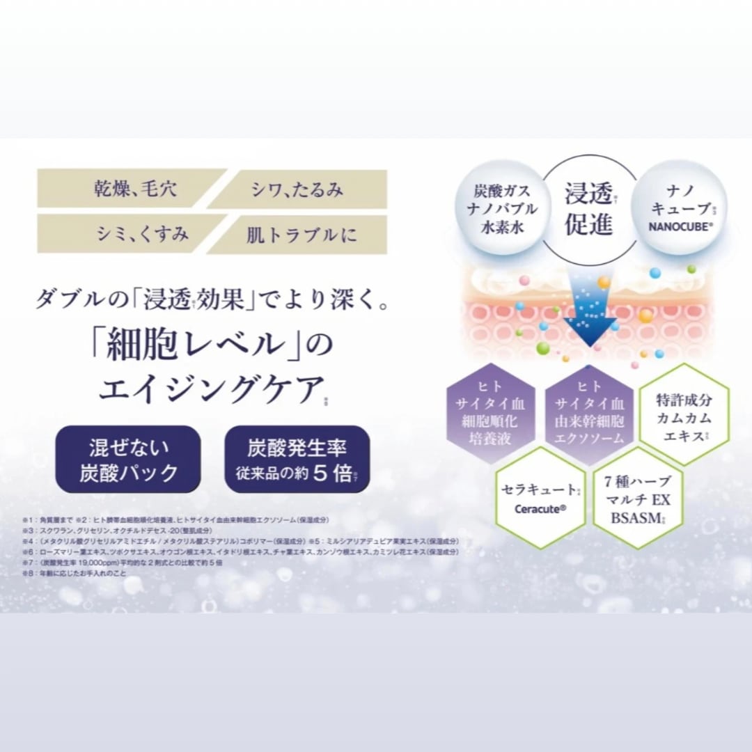 高濃度炭酸とナノ技術により、美容成分を角質層のすみずみまで届けます。